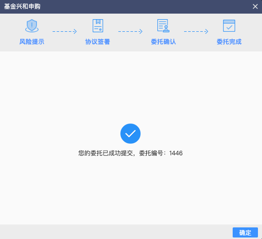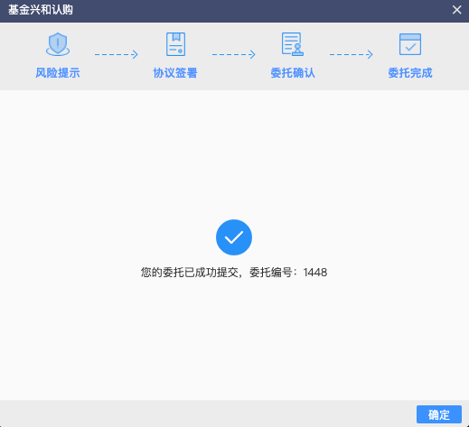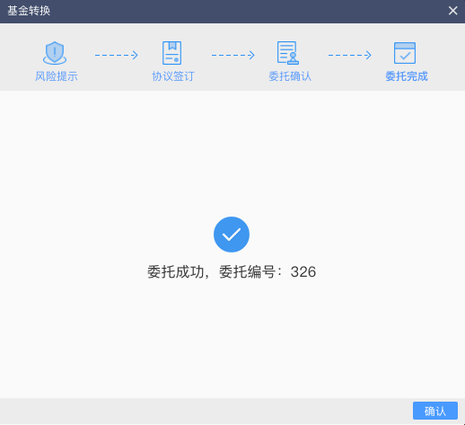 ⑦委托完成后,返回委托结果。委托信息可通过【基金委托】列表查看。