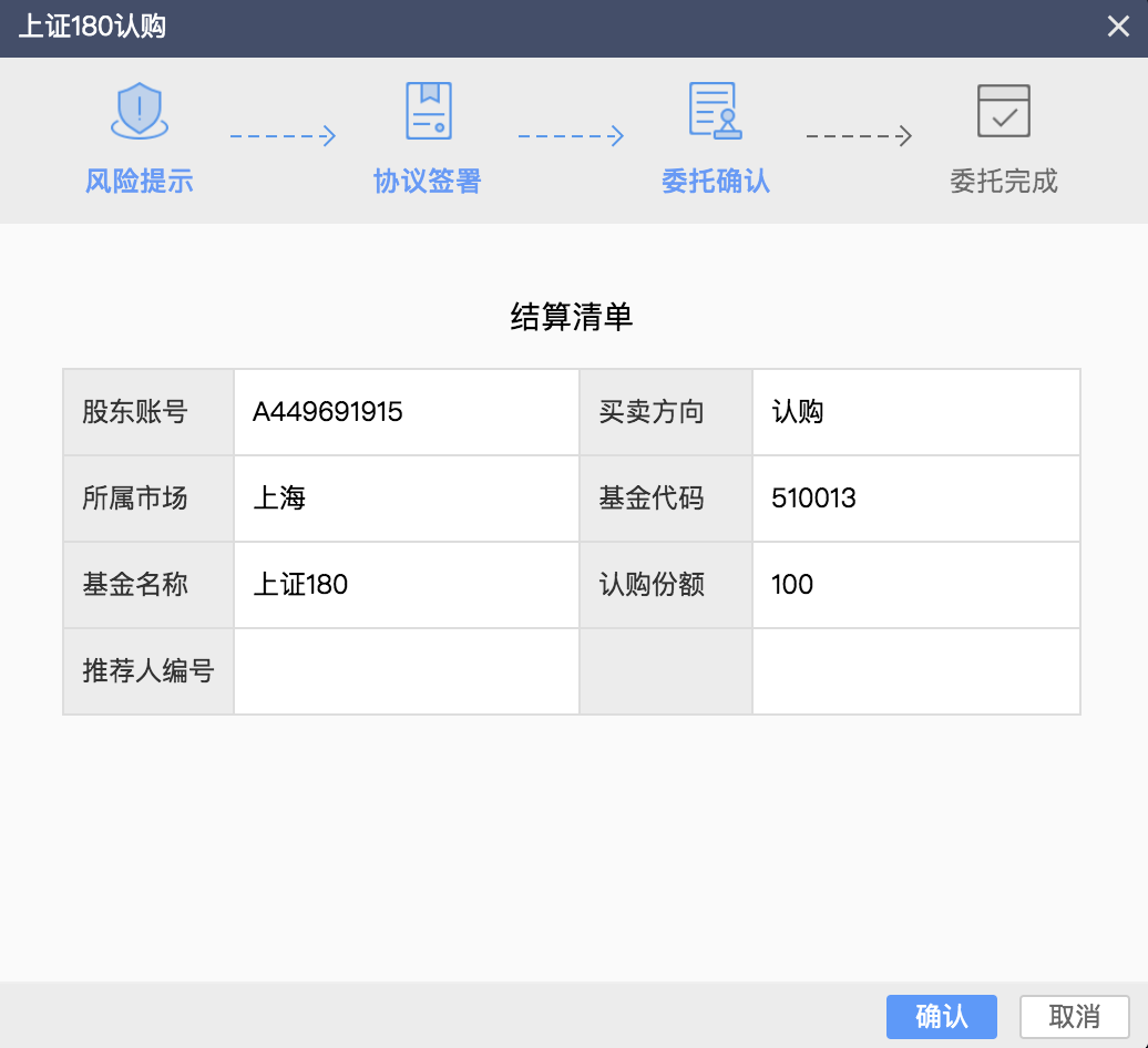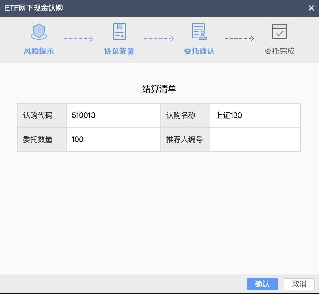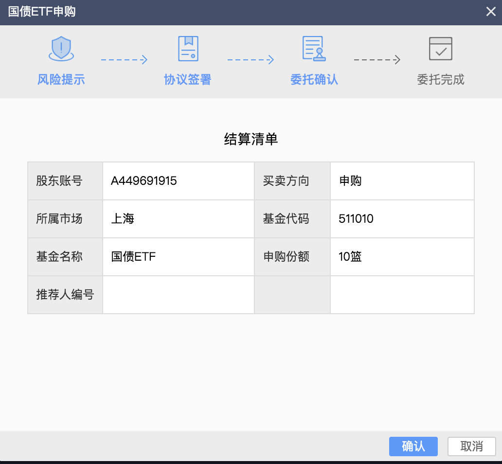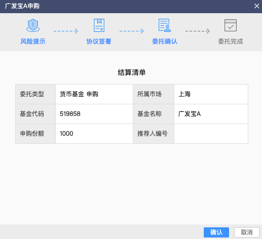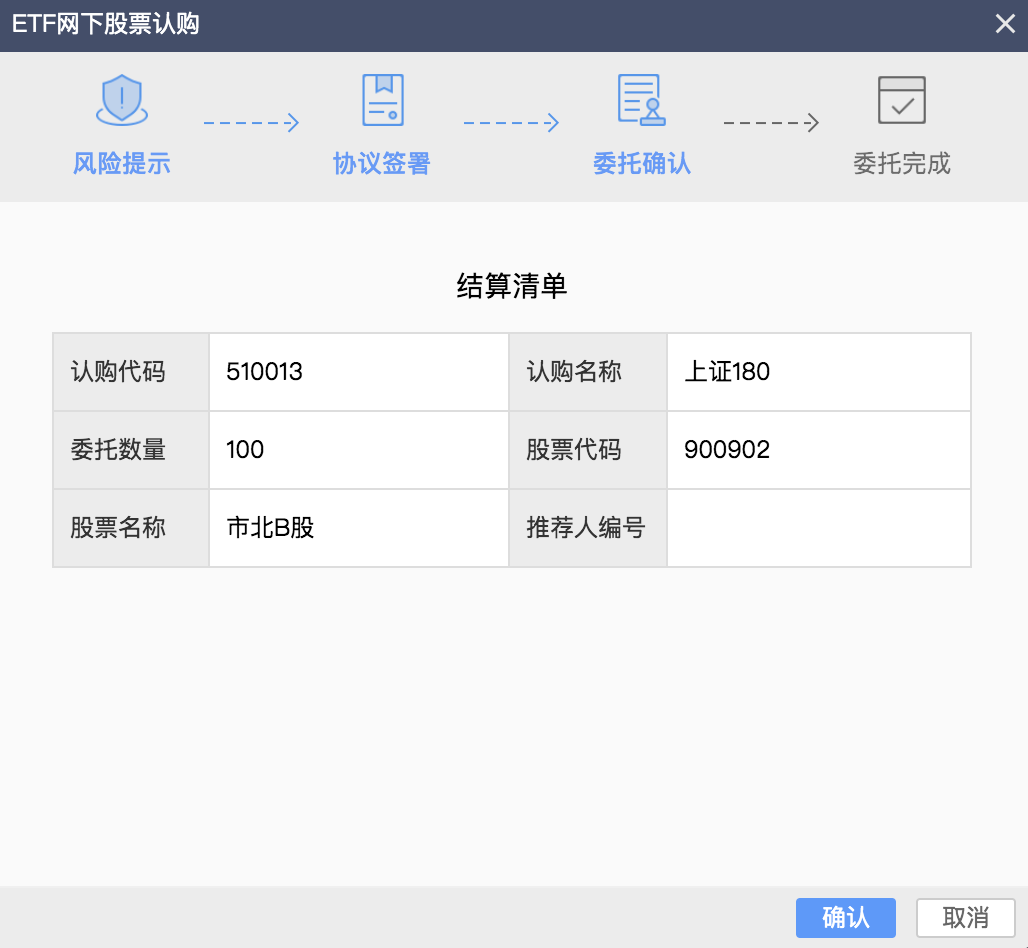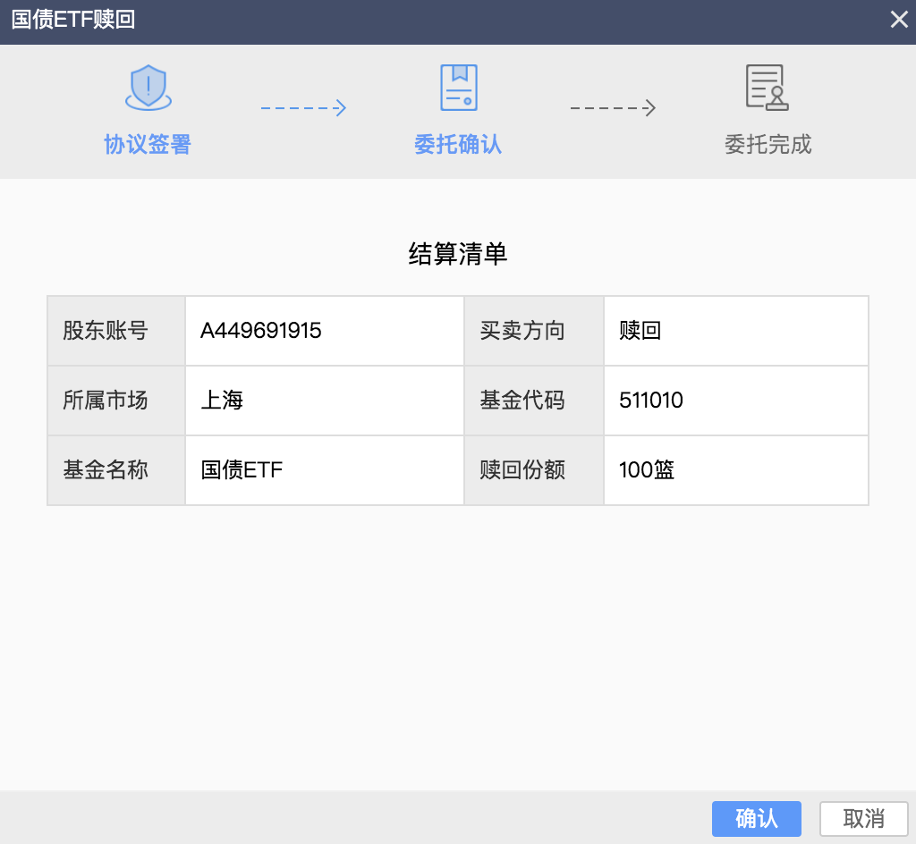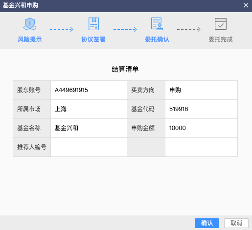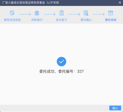 ⑥确认委托信息,如果信息正确点击【确认】进入下一步。
