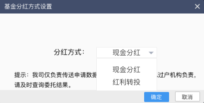 下拉选择分红方式,选择后点击【确定】按钮分红方式设置即完成。